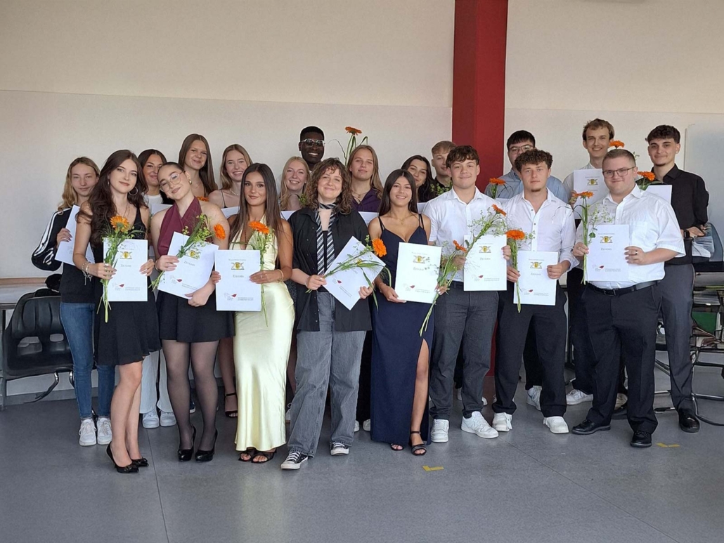 Gemeinsam mit Herrn Roland Krams, dem Abteilungsleiter für das Berufskolleg, und Klassenlehrer Jens Westensee überreichte Frau Börnsen die Zeugnisse – verbunden mit den besten Wünschen für den weiteren beruflichen und persönlichen Weg unserer Absolventinnen und Absolventen.