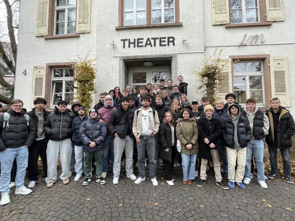 Im Rahmen des Lektüreunterrichts in Deutsch besuchte die Jahrgangsstufe 2 mit den Deutschlehrkräften Frau Jurcevic und Herrn Boehm und Herrn Zimpelmann als Begleitperson am 21. 11. 2024 das Marienbadtheater in Freiburg und wohnte der Theateraufführung „Corpus Delicti“ bei.